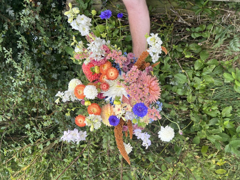 I grow near the coast in Pembrokeshire, between St. Davids and Fishguard. I supply flowers and arrangements to florists and the public. I have an honesty hut at the bottom of the drive which is stocked weekly (check social for details). Member of Farewell Flower directory. My season runs from Feb/March until end of September with some Christmas and dried flowers in the Winter months.